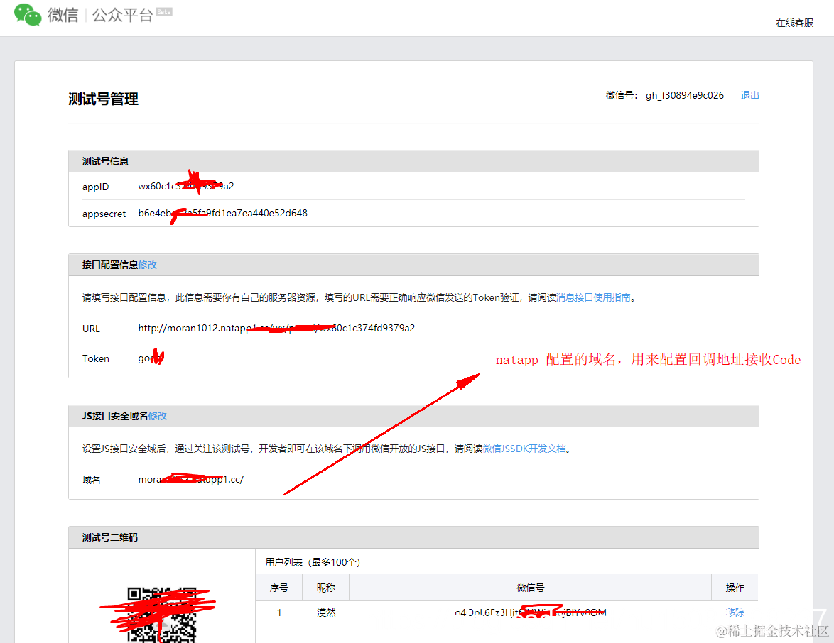 还有其中微信开发调试中用到的回调地址必须能够http访问,本人用的是natapp配置的