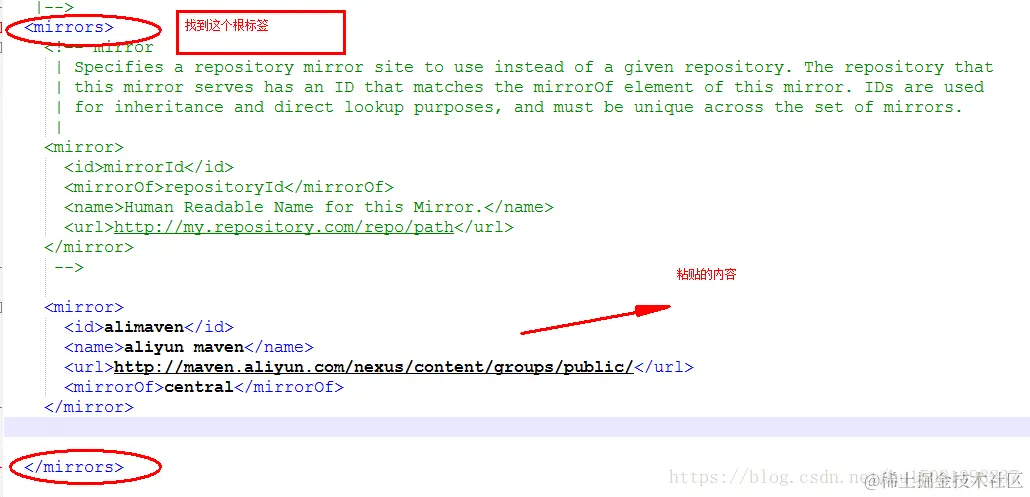 将以上代码粘贴到 maven 的settting 文件中 如下