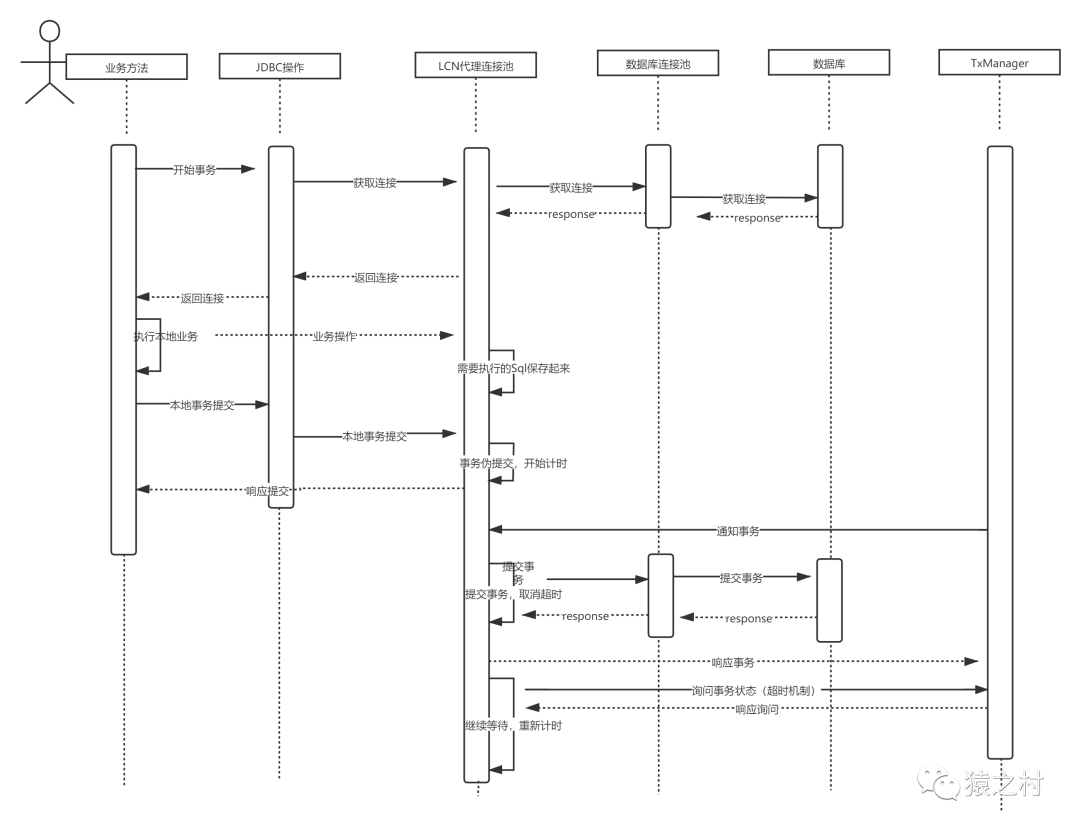 获取lcn原理PDF,项目文件代码,时序图,请关注公众号 猿之村,回复 分布式获取代码及资料