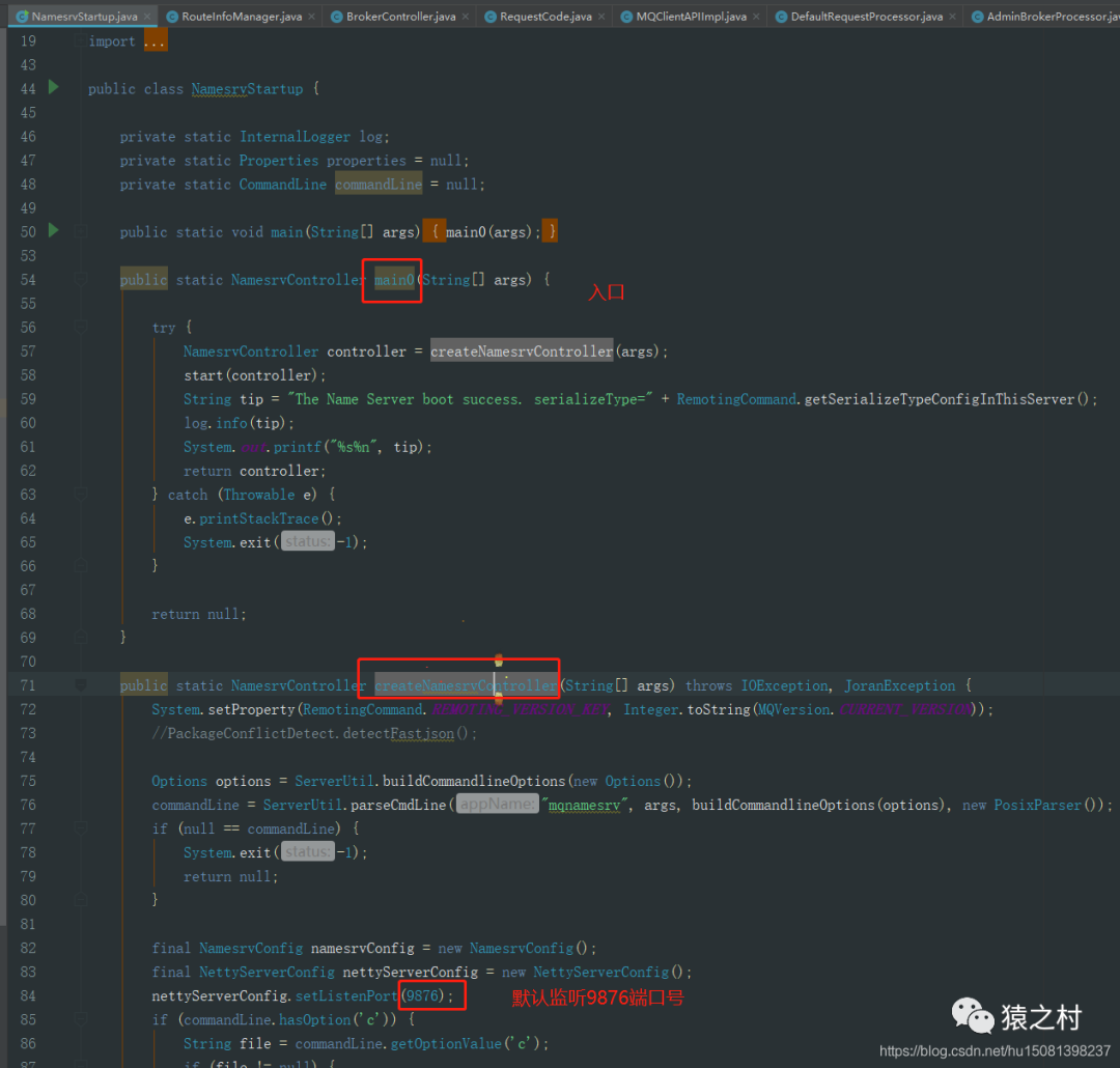 1.从源码的角度窥探下NameServer的启动流程,首先入口类NameSrvStartup