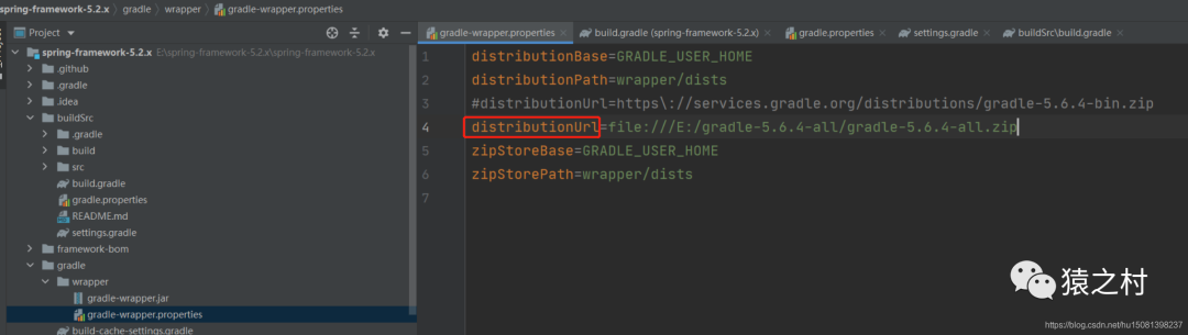 distributionUrl=file:///E:/gradle-5.6.4-all/gradle-5.6.4-all.zip(这个就是上面提到的下载后的zip也放到解压目录中,跟这个配置文件对应)