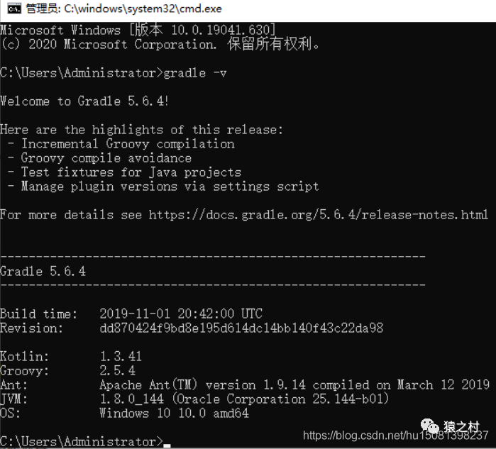 cmd 查看 gradle 是否配置成功 输入 gradle-v 如下则代表成功