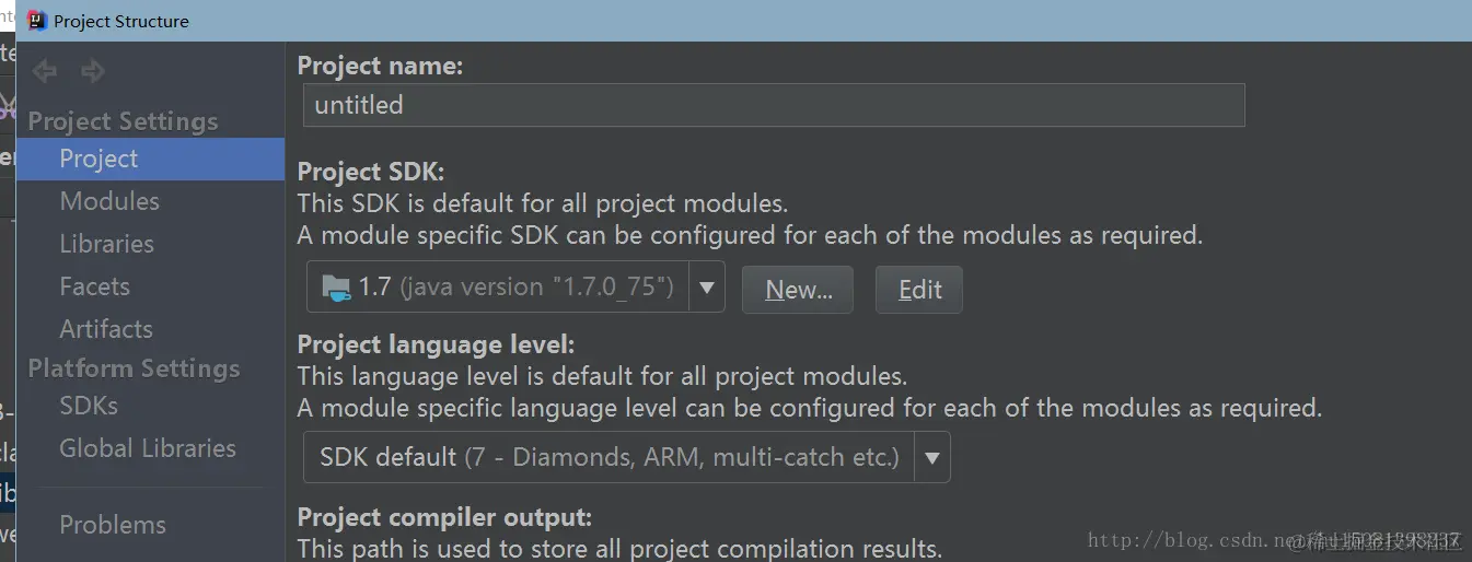 此时需要进入Project Structure界面 (快捷键 Ctrl+shift +Alt