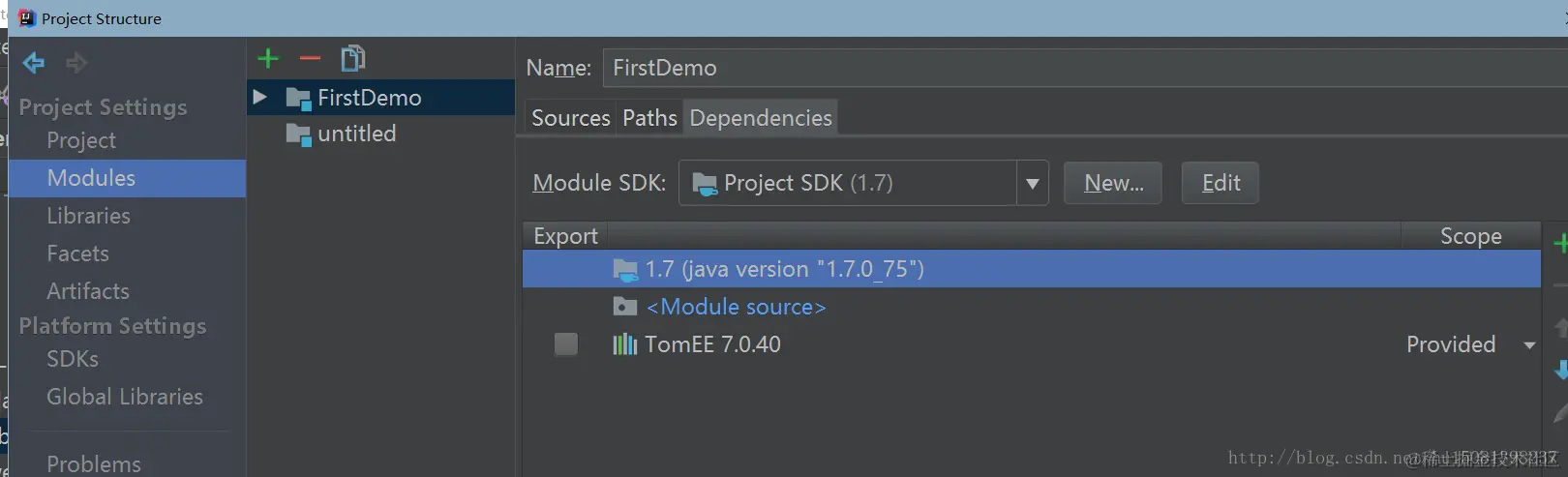 之后需要设置lib的路径了 ,选择Dependencies标签页