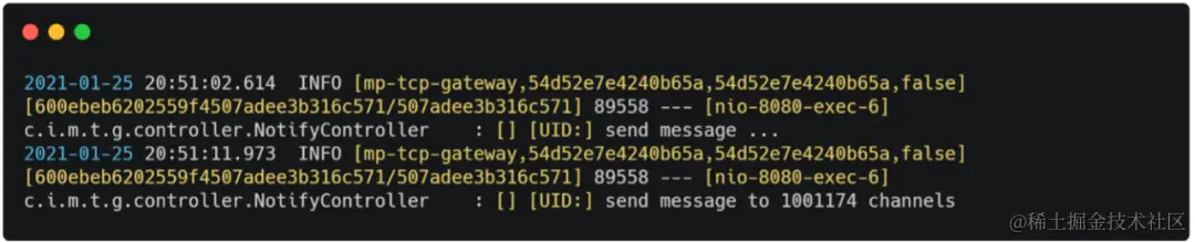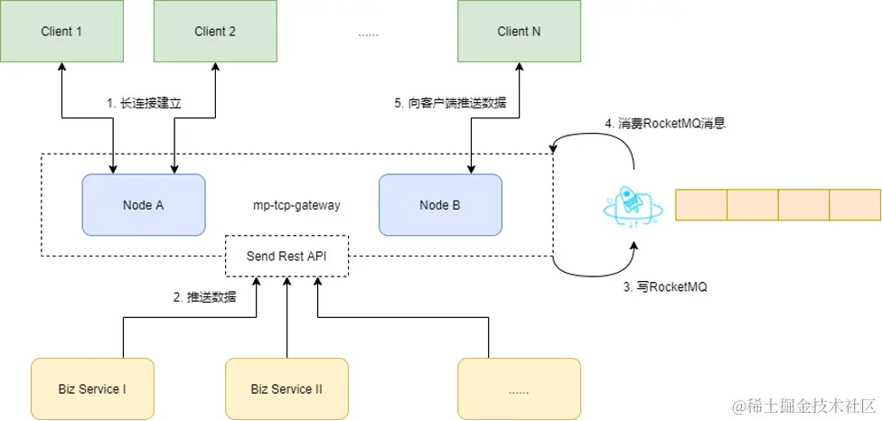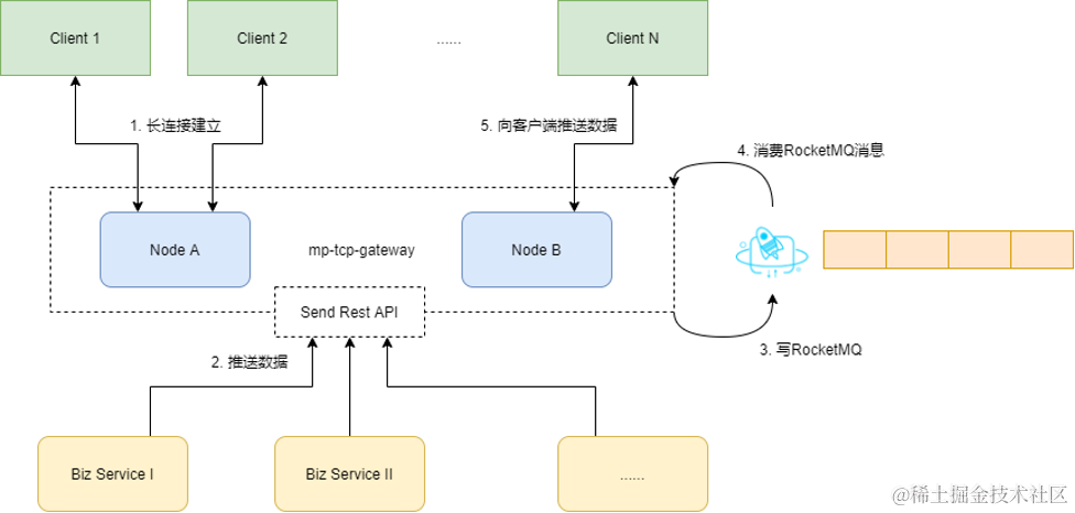3. 网关在接收到推送请求后,将消息写入RocketMQ。