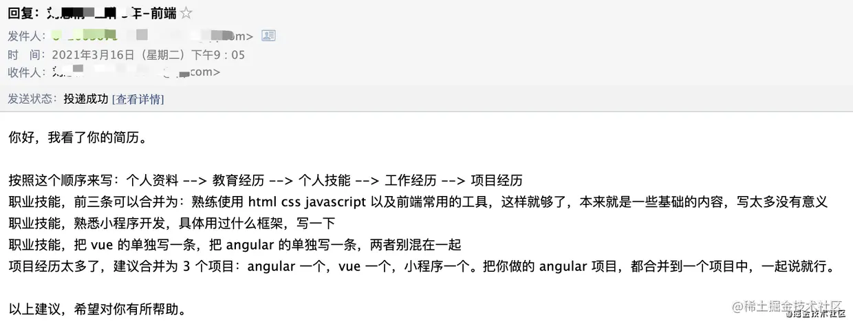 简历要认真对待,不要草草的写完。你潦草的对待简历,那面试企业也就潦草的对待你。 还有人给我发的简历,最后一页是空白的,啥也没有。这一看就不仔细。做程序员,非常需要仔细认真的工作态度。 还有,一些技术名词的英文单词拼写错误,这都是非常不好的事情。