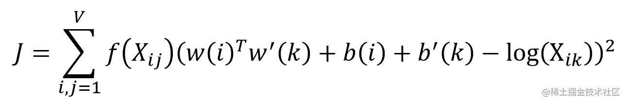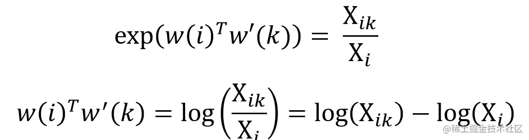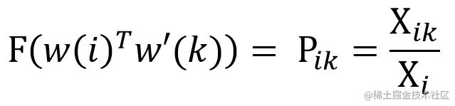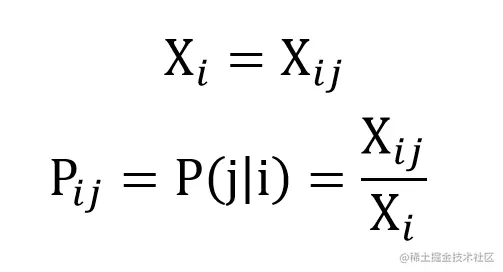 统计出共现矩阵 X 后,可以使用 Xij 表示单词 i 和 j 共同出现的次数,而 Xi 为所有 Xij 的和,Pij = P(j|i) 表示单词 j 出现在单词 i 上下文的概率。