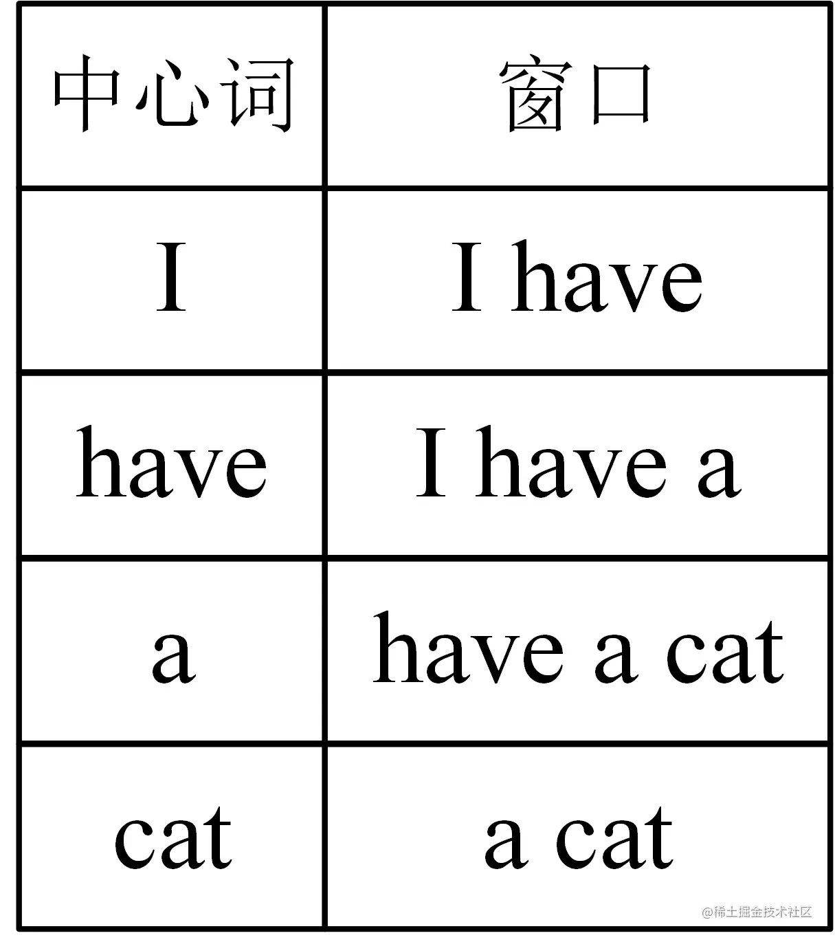 4. 中心词左右两边的单词有 c-1 个,为上下文单词