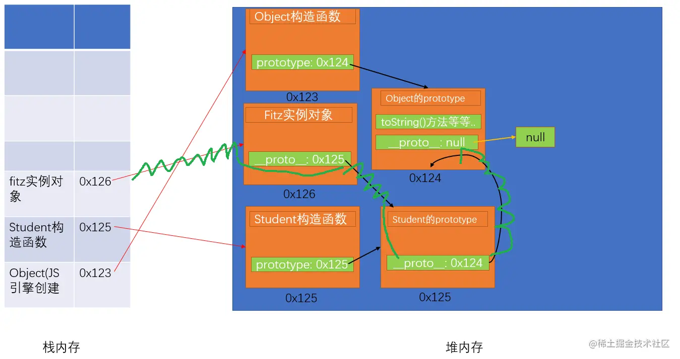 我就拿console.log(fitz.toString())来画图解释一下凭什么实例fitz能够调用object.prototype上的toString()方法