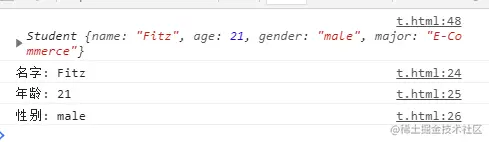var fitz = new Student('Fitz', 21, 'male', 'E-Commerce')