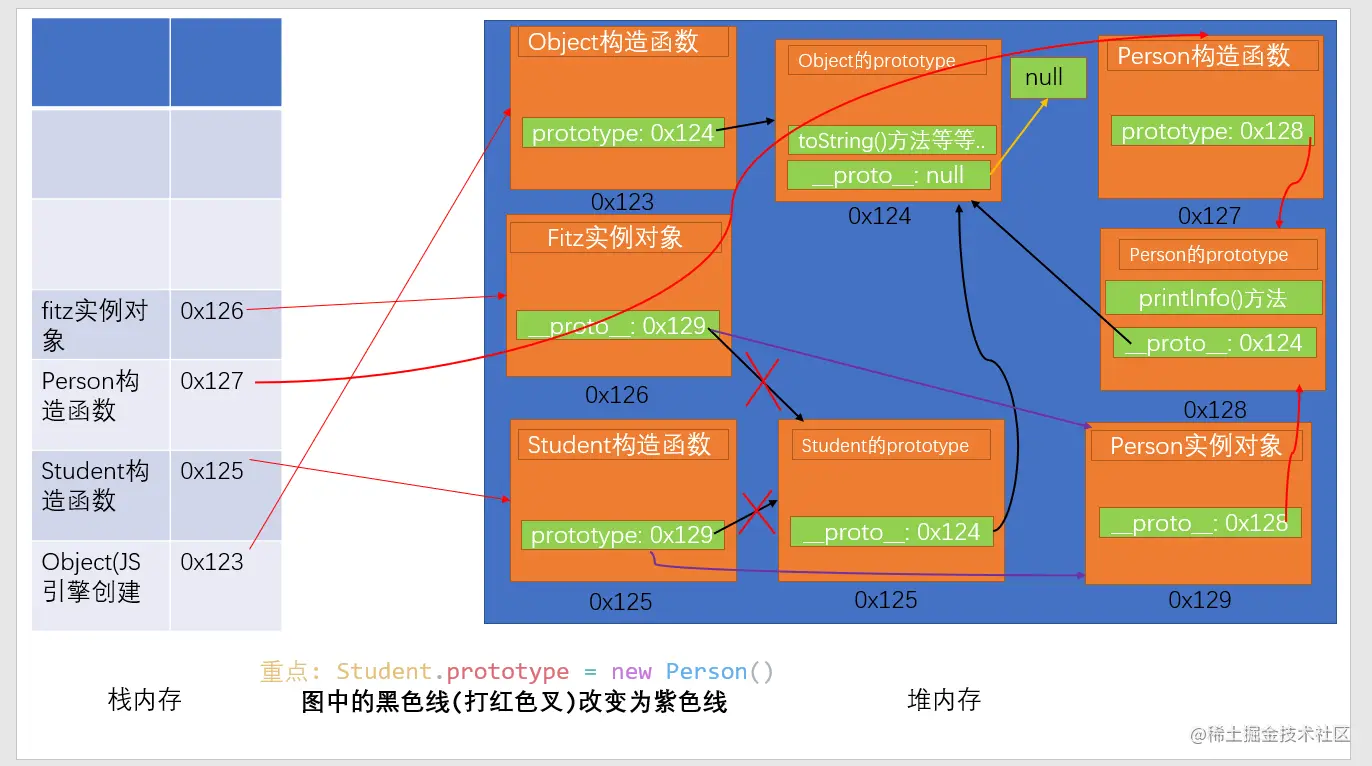 那么思路,也是重点就来了: Student.prototype既然是通过__proto__来到达object.prototype的说明Student.prototype至少是某某的实例,这里当然就是object.prototype的