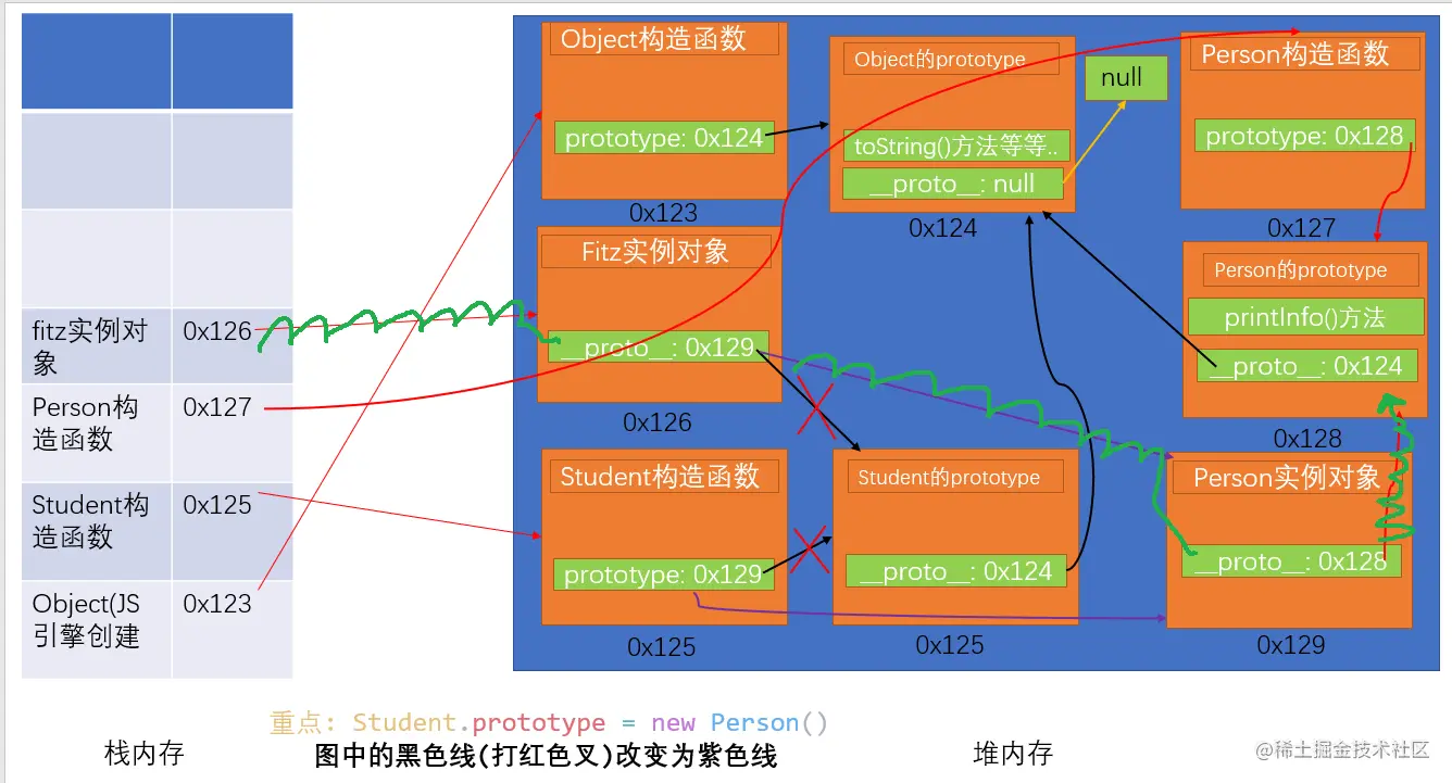 波浪绿色线就是完整的原型链,解释了为什么实例fitz能调用printInfo()方法