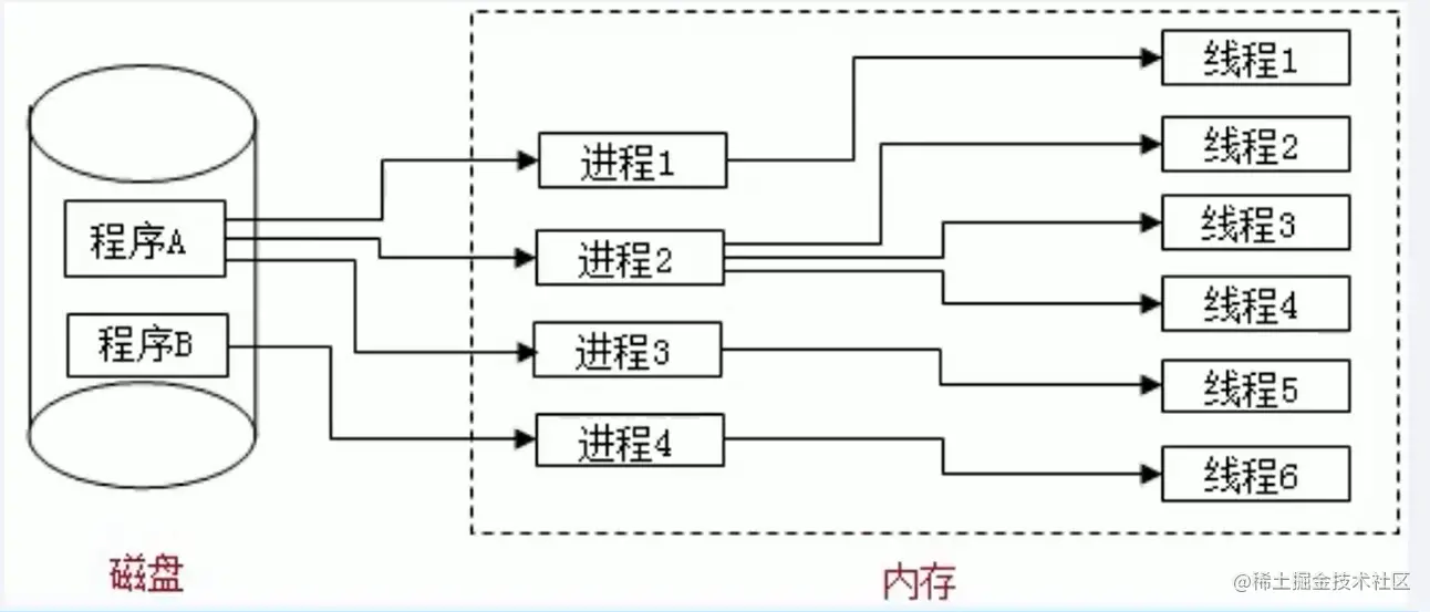 进程(process): 当有应用程序需要启动时,操作系统就会自动启动一个或多个进程来维持整个应用程序的运行,应用程序是运行在进程的线程中的