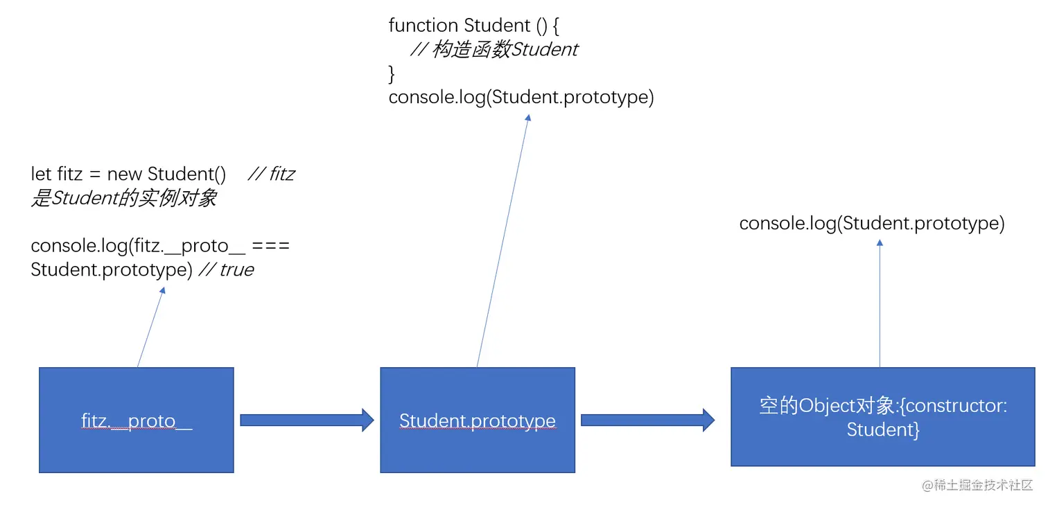 console.log(Student.prototype.__proto__ === Object.prototype) //true