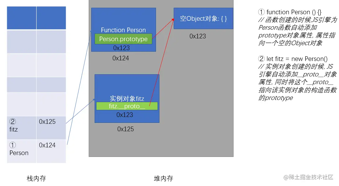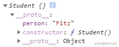 let fitz = new Person() // 实例对象创建的时候, JS引擎自动添加__proto__对象属性, 同时将这个__proto__指向该实例对象的构造函数的prototype