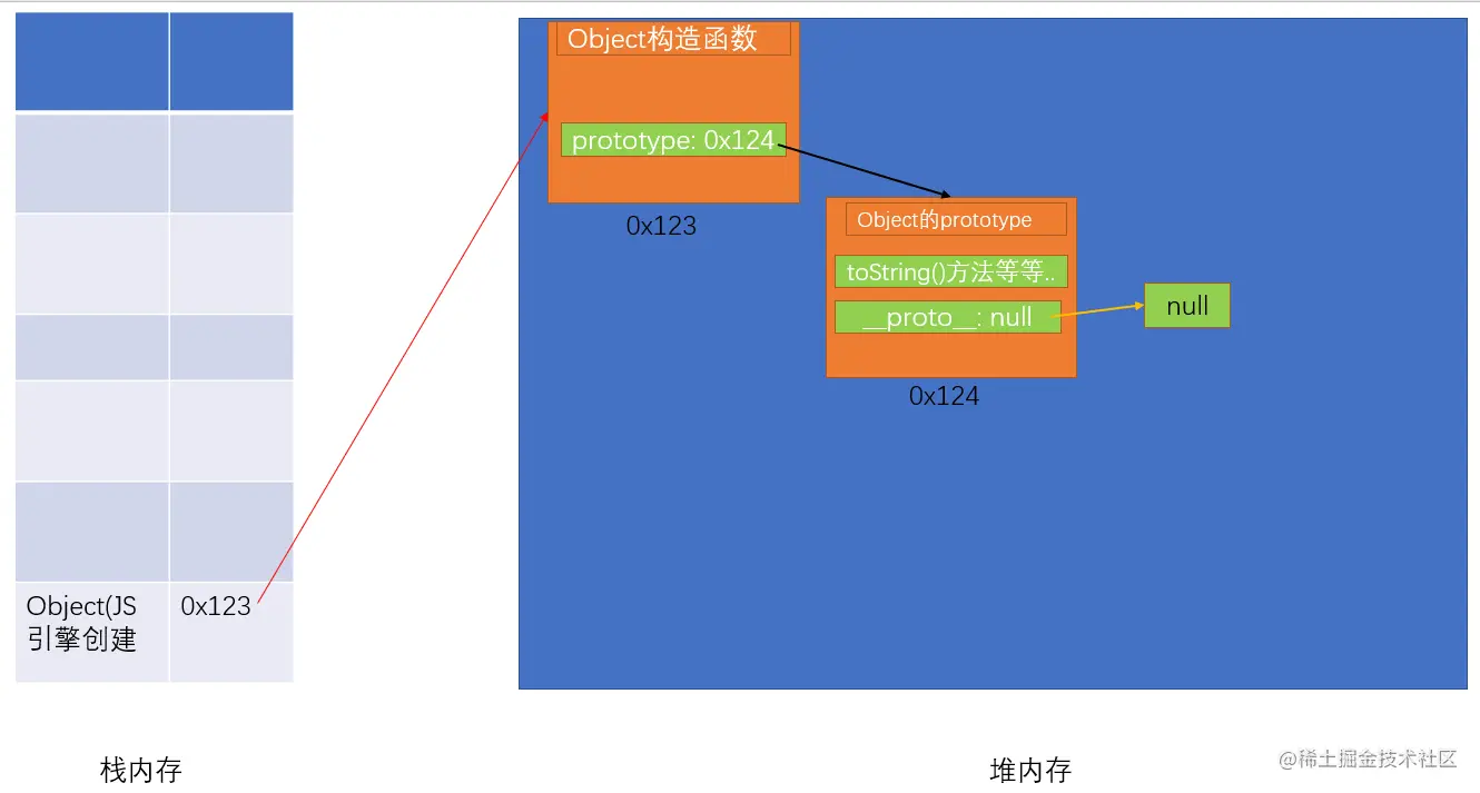 - 而关键就是,构造函数的显式原型是Object.prototype的实例对象