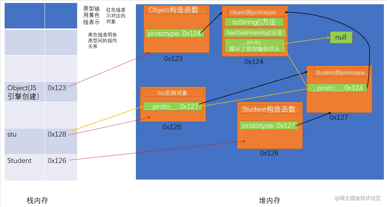 stu.__proto__ => Student.prototype => object.__proto__ => Object.prototype => null