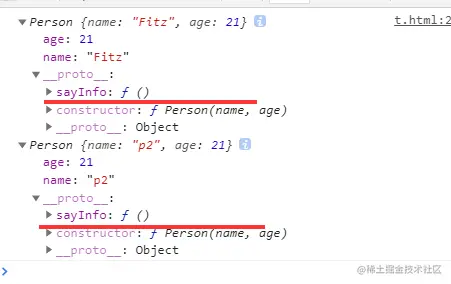 console.log(p1.sayInfo === p2.sayInfo) // true