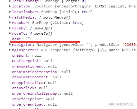 果不其然,window对象在页面一创建时,就有一个(申明)name属性