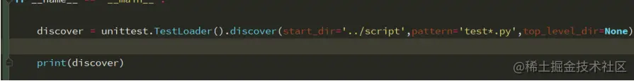 discover方法使用: 该方法遍历指定目录按条件过滤,返回测试套件 -case_dir: 这个是待执行用例的目录 -pattern:这个是匹配脚本名称的规则,test*.py 意思是匹配 test 开头的所有脚本 -top_level_dir:这个是顶层目录的名称,一般默认等于 None 就行了