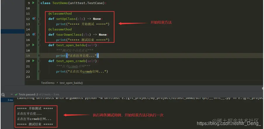 2、销毁操作:def tearDownClass(self) -> 结束操作