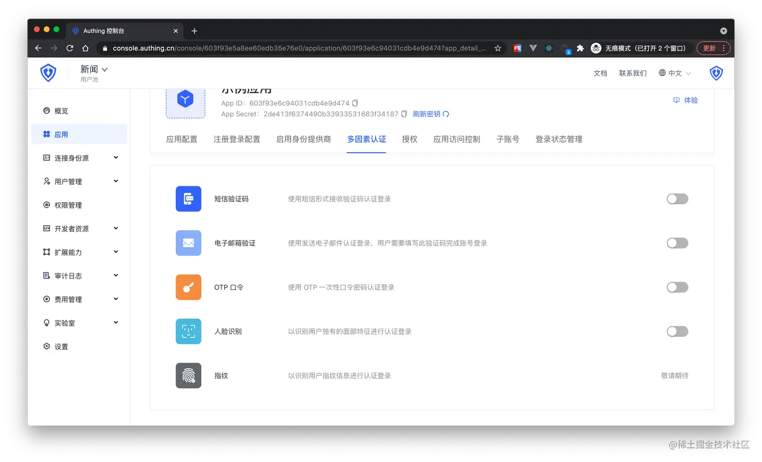 Authing 双周动态:企业 MFA 支持人脸识别(3.28-4.10) Authing身份云 2021-04-10 160 阅读1分钟 关注 @Authing 企业 MFA 支持人脸和 OTP。 注册协议支持多语言。 AD 双向同步。 支持 gitlab 社会化登录。