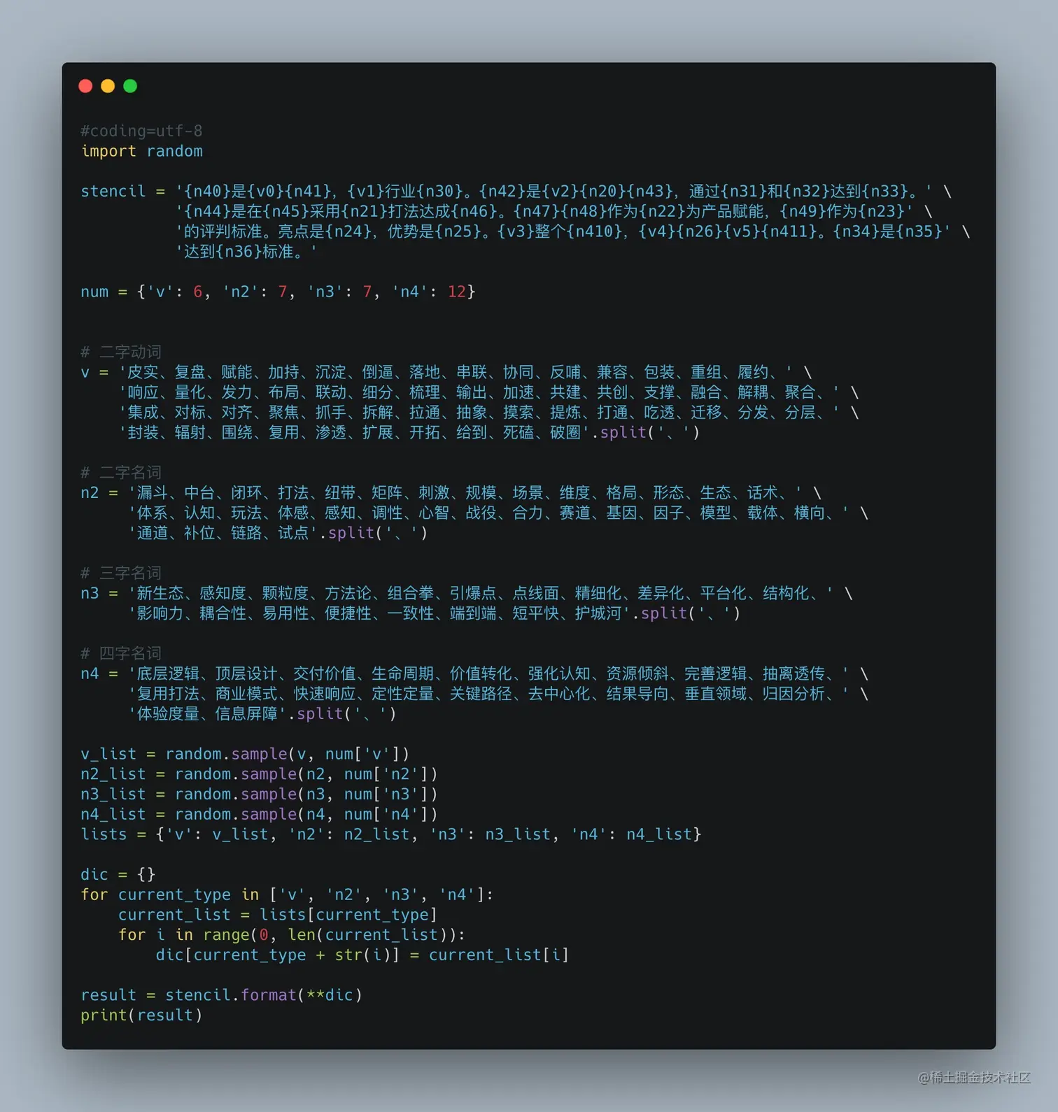 随之而来的是互联网某Python大佬的一段神奇脚本,黑话生成器,也跟着火了: