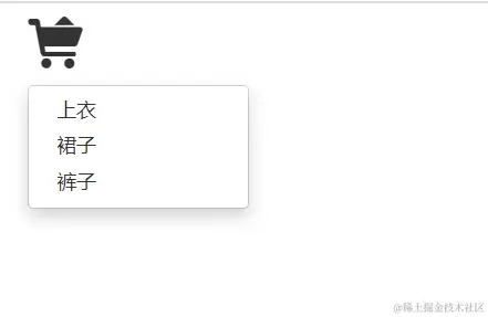 点击图中购物车(这里购物车使用的icon字体图标),则会出现图中所示下拉框。