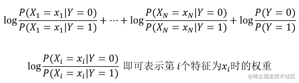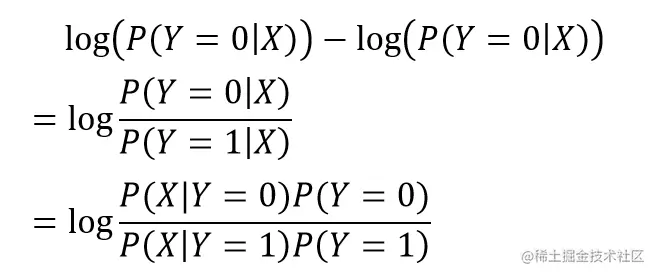 我们要比较 P(Y = 0|X) 与 P(Y = 1|X),等价于比较 log P(Y = 0|X) 和 log P(Y = 1|X),如果 log P(Y = 0|X) - log P(Y = 1|X) > 0 则 X 属于 Y=0 的概率更大。