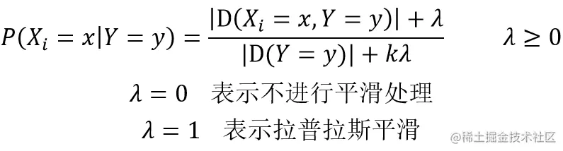 假设第 i 个特征 Xi 有 k 种可能的取值,则可以使用下面的公式进行平滑处理。