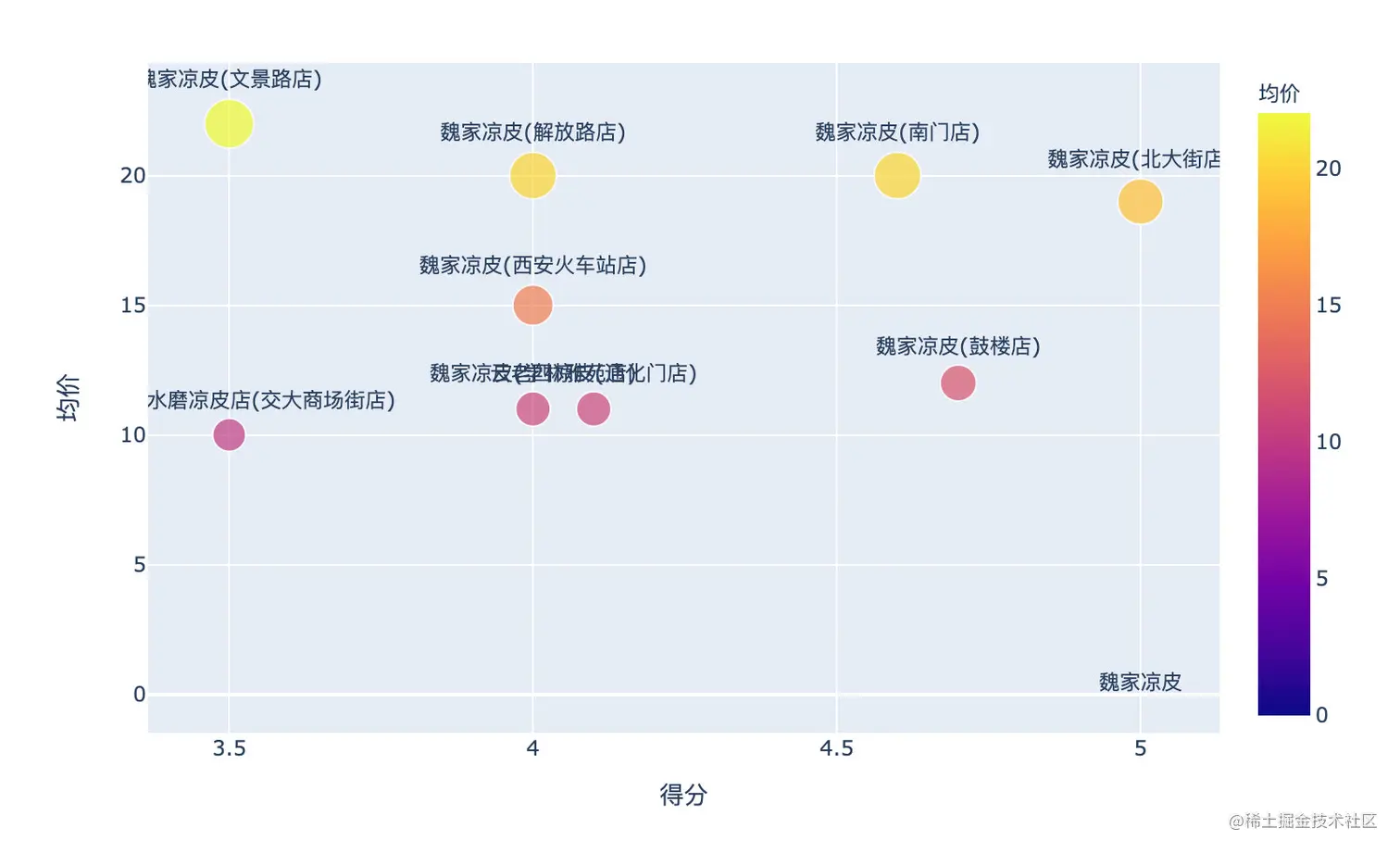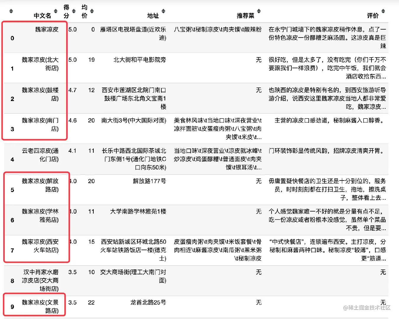 到了西安肯定是不能错过凉皮的,数据中总共19家: