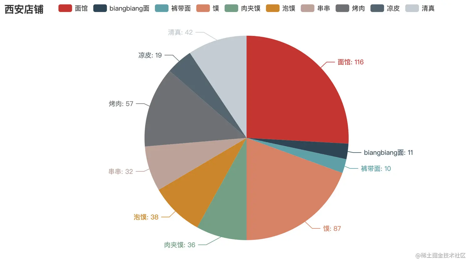 先看看西安不同美食店铺数量