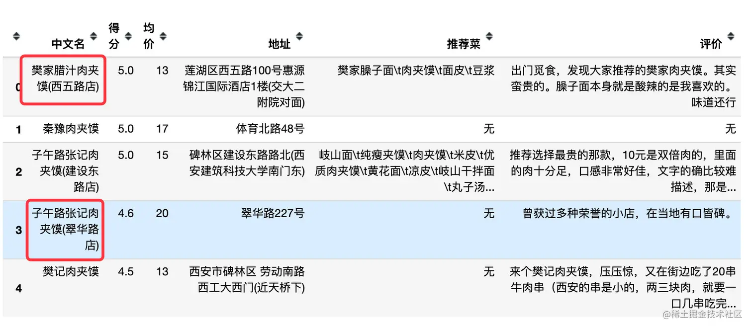 我们具体看看陕西的另一个著名小吃:肉夹馍,取出相关数据的前5名: