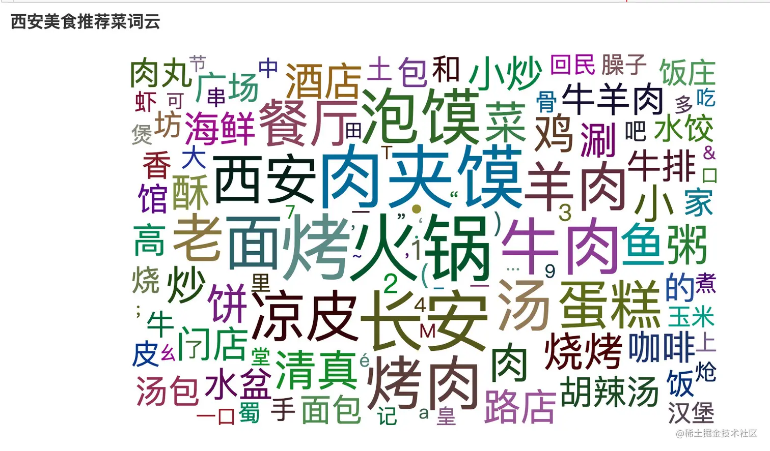 从词云图中我们也可以看到陕西西安人的美食和饮食特点:面食为主。