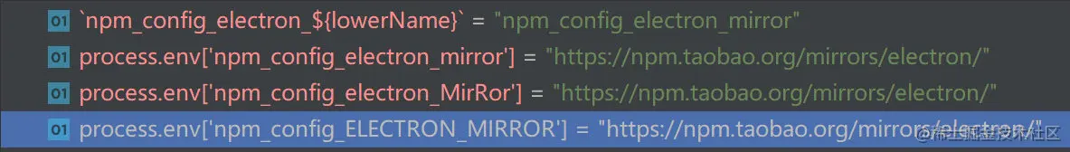 ~/.npmrc文件中,单独设置Electron的镜像electron_mirror="https://npm.taobao.org/mirrors/electron/"
