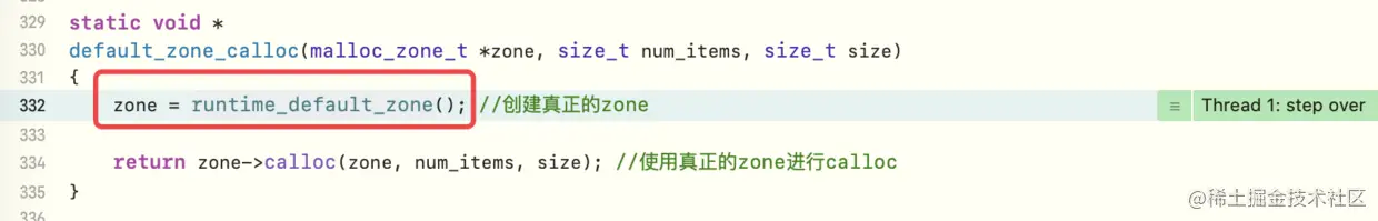 zone->calloc传入的zone 就是 上一步中的default_zone - 这个关键代码的