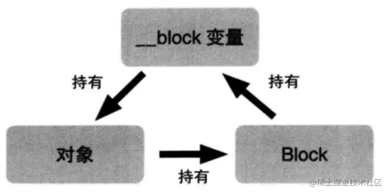 copy方法;copy方法内部会调用_Block_object_assign函数;_Block_object_assign函数会对__block变量形成强引用(retain)。_Block_object_assign((void*)&dst->a, (void*)src->a, 8/*BLOCK_FIELD_IS_BYREF*/); -