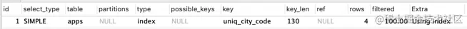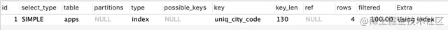 因为 uniq_city_code 索引中包含 id 字段,此查询可以从 uniq_city_code 索引中直接取得数据,所以优化器选择走 uniq_city_code 索引;