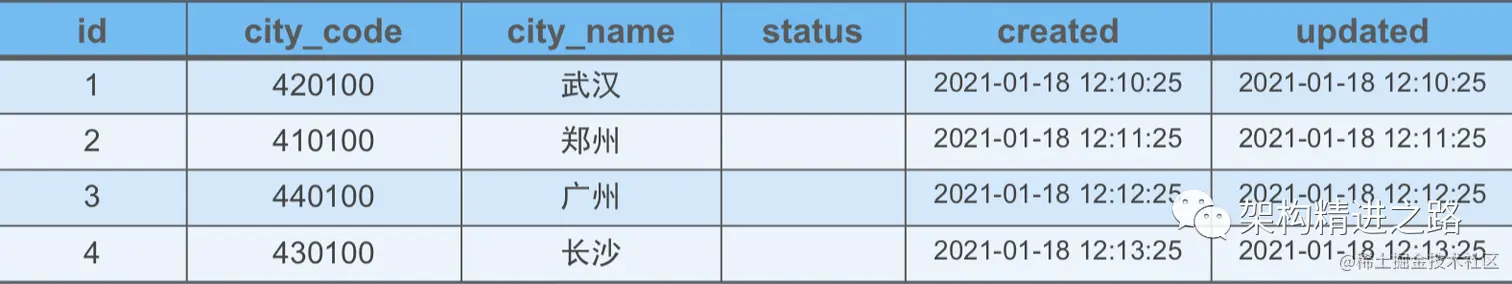 我们存在这样一张数据表(cities),记录了城市 code 和名称一些基本数据。
