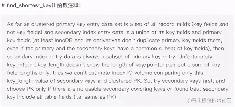 MySQL 在做全表扫描时,MySQL 会调用 find_shortest_key() 来选取最短的索引来扫描。