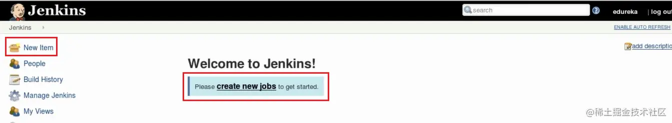**第 1 步:**在 Jenkins 界面主页中,选择 New Item。