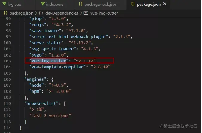 安装完成之后可以看到package.json里面的关于插件vue-img-cutter版本信息