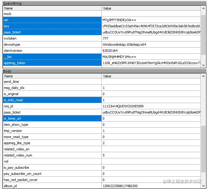 开始编写代码之前,先给大家说一下,大概需要用到哪些数据(表单里面有很多参数,但是大部分是不需要的),蓝色选中的就是需要的参数,其他的可以忽略