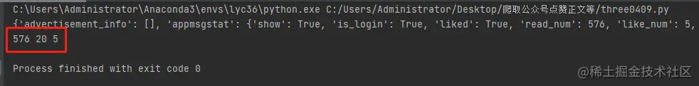 可以看到已经成功发送post成功,并且提取出对应的阅读数、点赞数、在看数