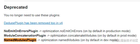 查看文档发布 optimization.namedModules removed (NamedModulesPlugin too) 已经被移除了。