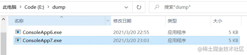 从上面第一行 start 列中可以看到 ConsoleApp6_2c2264b0000 的开始地址为 000002c2264b0000,接下来用 savemodule 导出到 E:\dump。