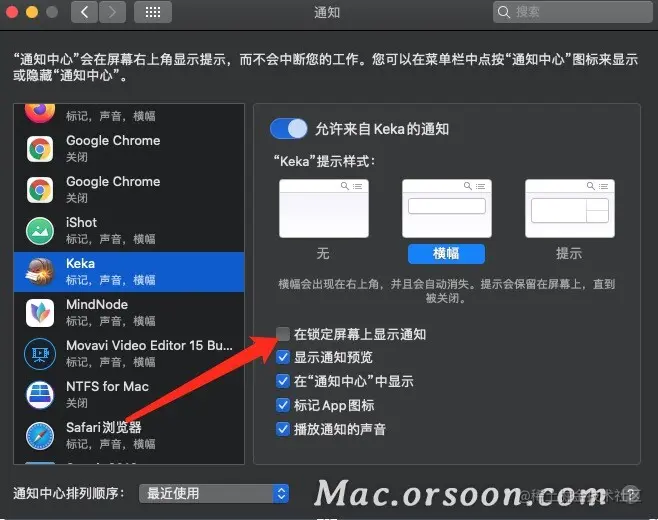 7.最后,取消勾选『在锁定屏幕上显示通知』选项即可。