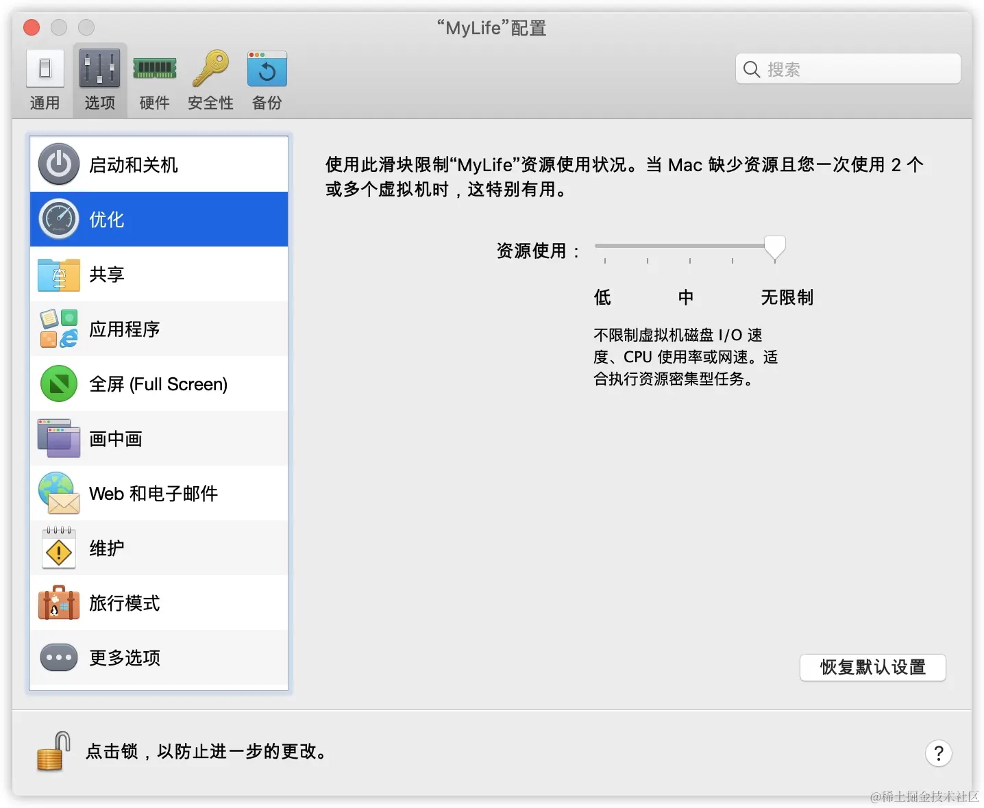 - 资源优化:Mac本硬件配置较低时可更改此配置