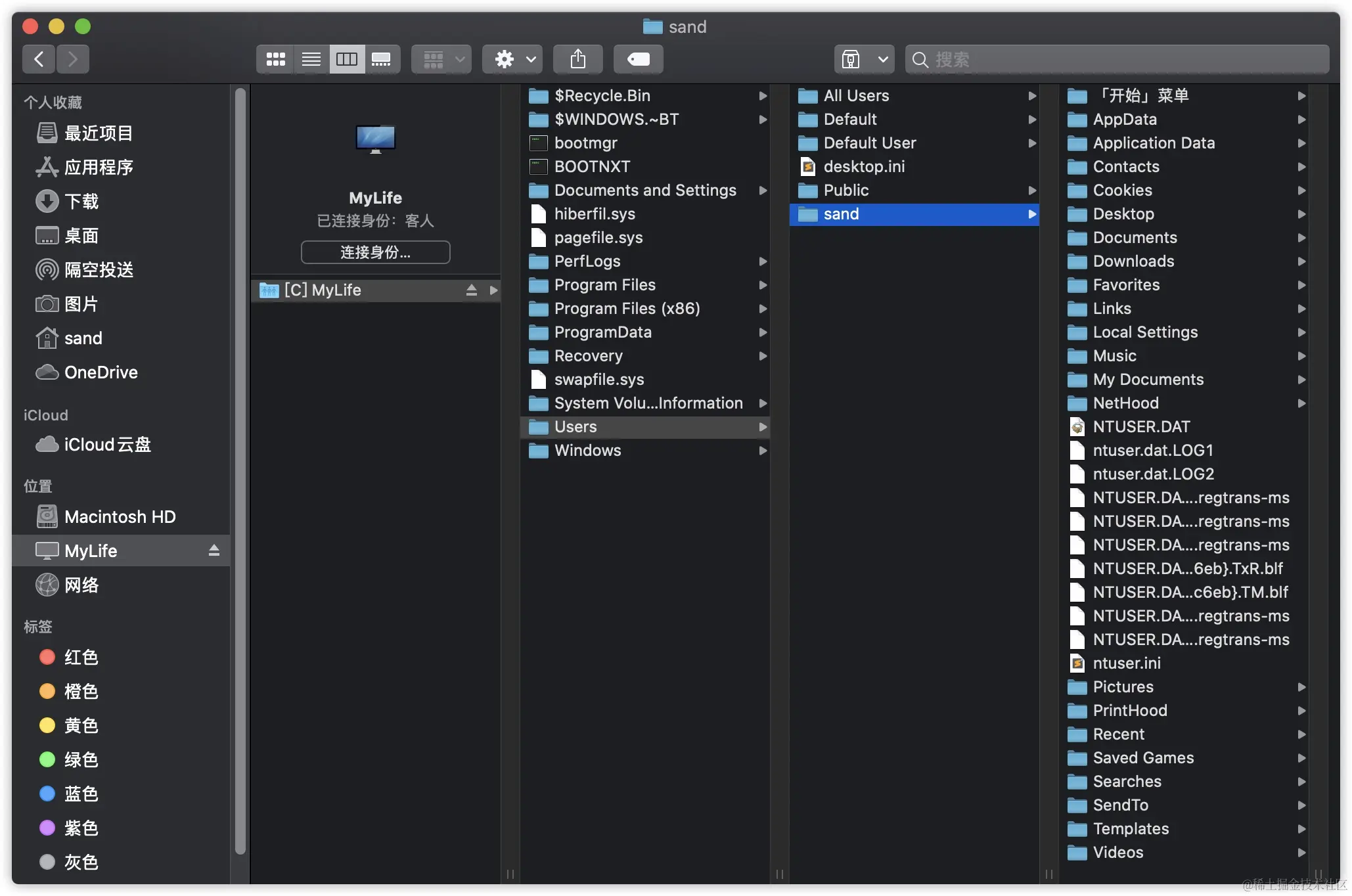 打开访达,可以在网络中看到Windows系统映射过来的磁盘,直接浏览相应的文件。