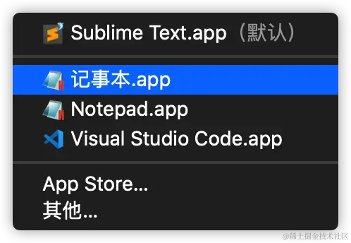 或者我们也可以在文件右键 -> 打开方式,会显示Mac系统中的部分应用,我们也可以点击选择其他应用,查看所有的Mac应用,但是不能通过浏览的方式去选择。